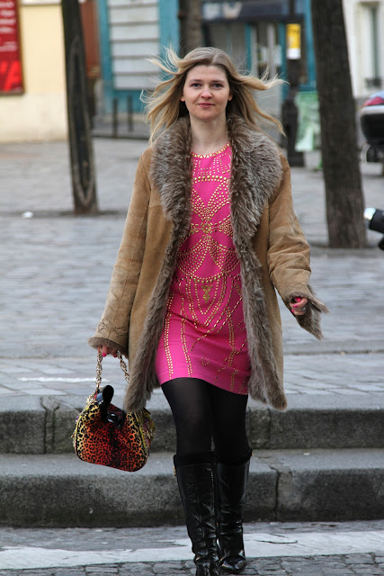 Et moi, je vais maintenant enfiler la robe rose… Je l’accompagne du sac Versace qui va avec et j’espère que je ne ferai pas la queue dehors pour rentrer… Parce que j’ai des bas et pas de petite culotte… j’aurais froid aux fesses…